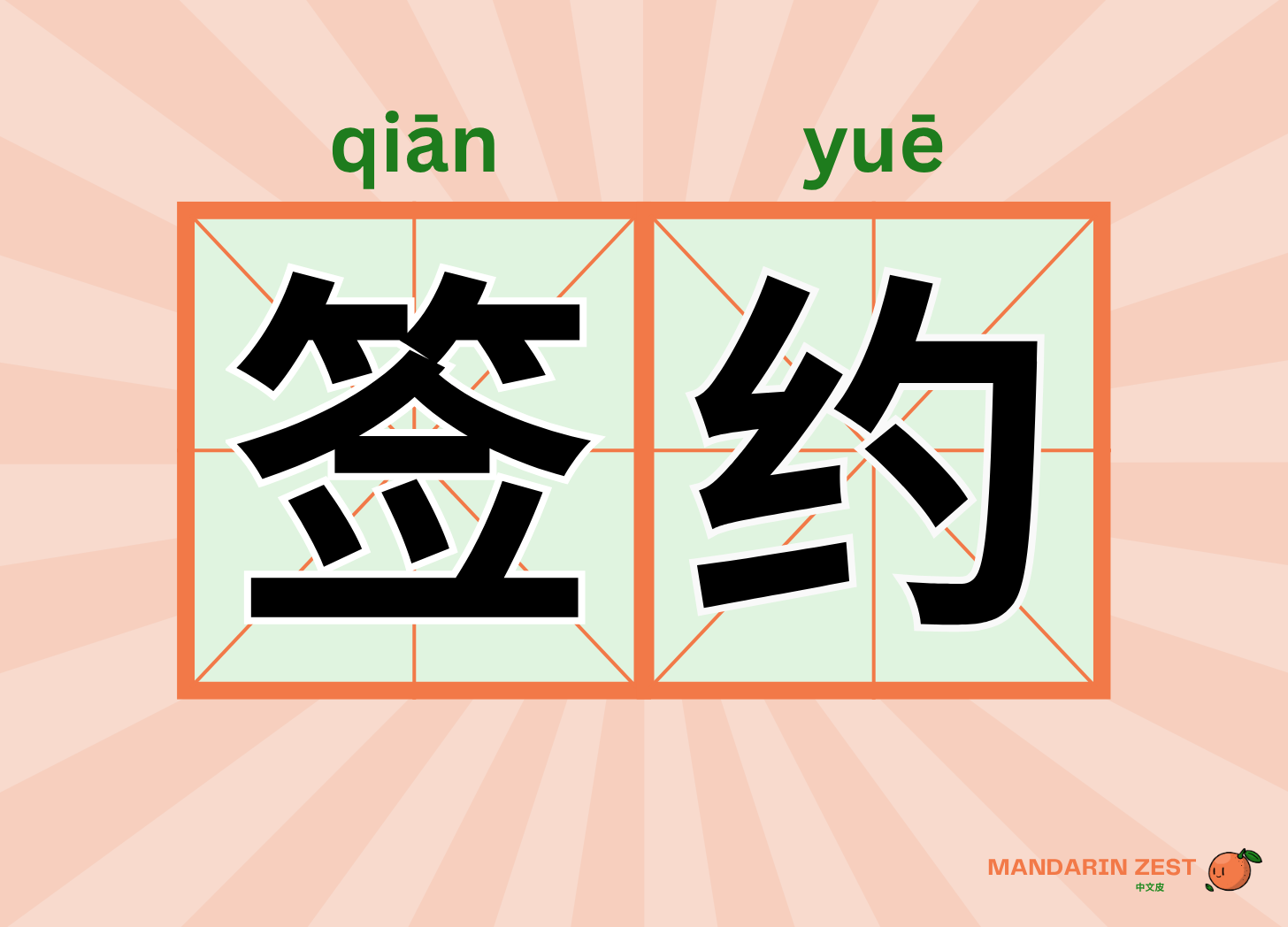 Today, we’re learning about 签约 (qiānyuē) — a key term in business Chinese meaning “to sign a contract” or “to conclude an agreement.” Whether you’re sealing a deal, formalizing cooperation, or celebrating a partnership, this word will come up often in any business context in China.