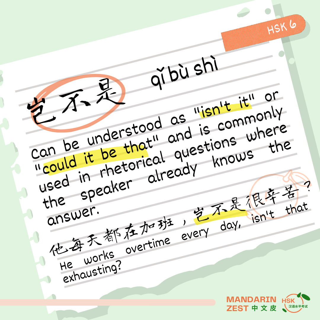 The phrase 岂不是 (qǐ bù shì) can be understood as "isn't it" or "could it be that" and is commonly used in rhetorical questions where the speaker already knows the answer. It adds an emphatic or rhetorical tone, often implying that something is obvious or inevitable.