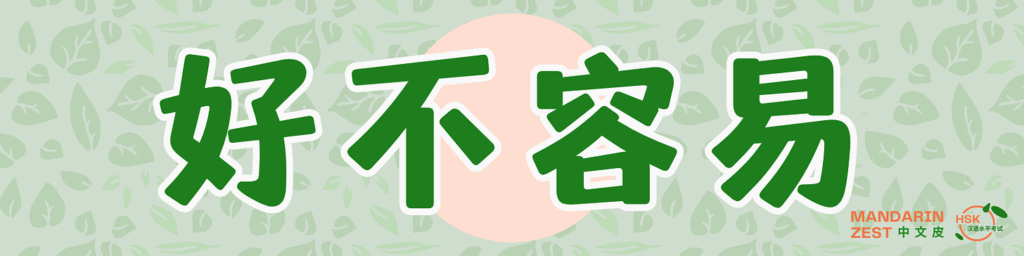 In Chinese, 好不容易 (hǎo bù róng yì) literally means “not easy at all,” but it’s used to express that something was achieved only after great effort or difficulty. It emphasizes how much time, energy, or patience was required to complete an action and often carries a tone of relief, satisfaction, or frustration.
