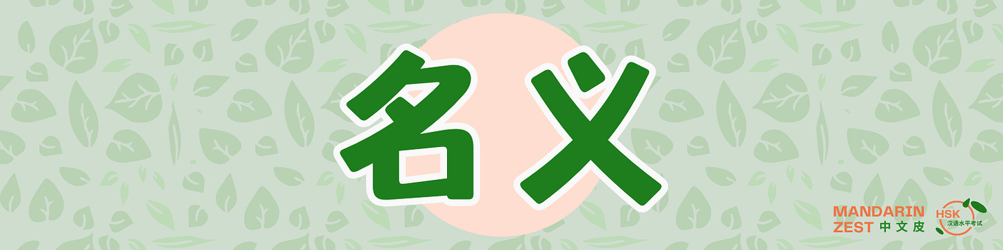 名义 (míngyì) means “name,” “title,” or “capacity.” In grammar, the structure 以 + Subj + 名义 is used to show that an action is done on behalf of, under the title of, or in the name of someone or something.