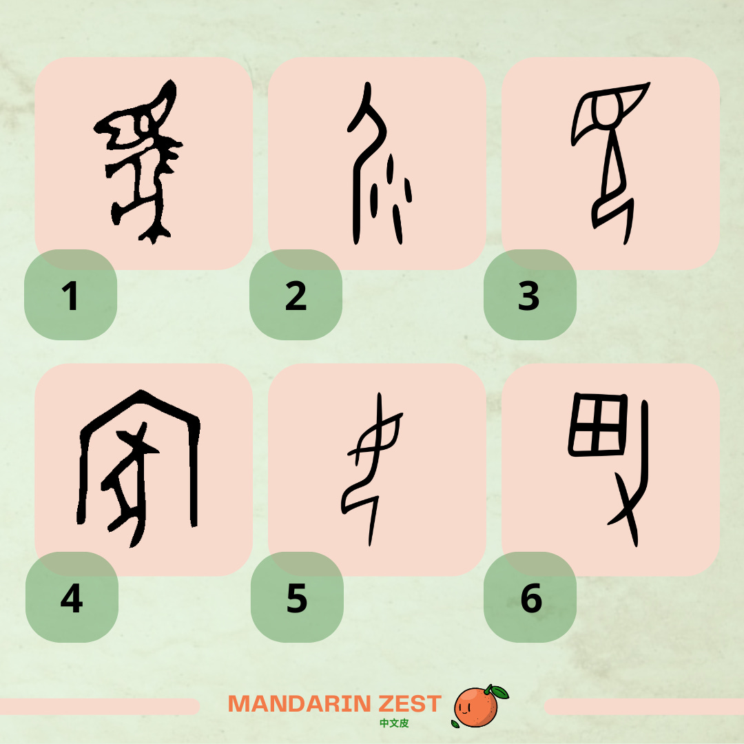 Look at these oracle bone characters and try to guess their modern form, either simplified or traditional (if you know the traditional script, too). Scroll down for answers.