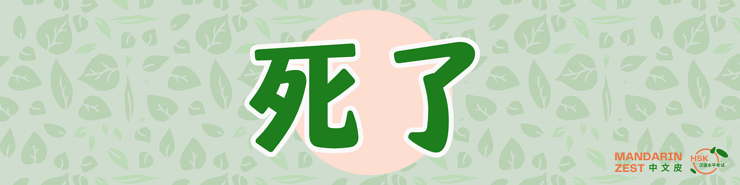 死了 literally means “died,” but when used after an adjective, it doesn’t mean someone actually died. Instead, it functions like saying: