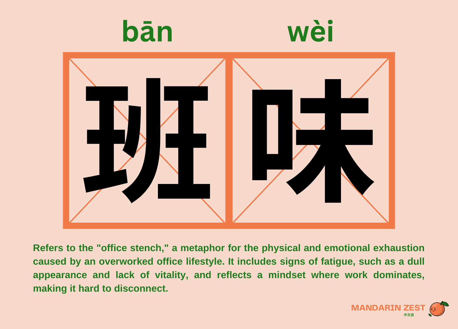 In recent months, a new term, 班味 (bān wèi) — "Office Stench" — has been adopted by netizens across China to describe the feeling of an overworked and meaningless office lifestyle.