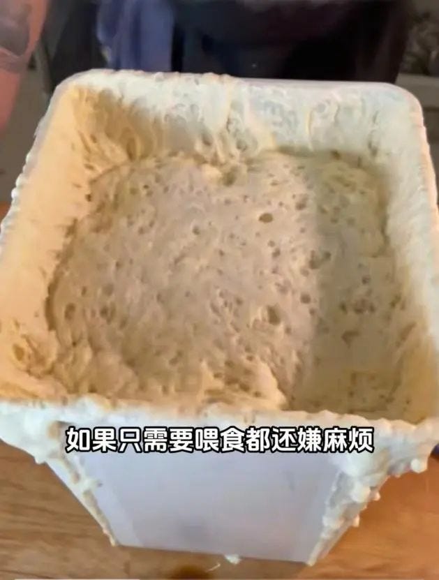 A blogger who keeps yeast said: "The reason is simple — it’s easy to manage and worry-free. It doesn’t destroy your home and doesn’t need to be taken for walks." The blogger explained that keeping yeast only requires mixing flour and water in a 1:1 ratio in a clean, oil-free container, stirring well, covering with a lid, and letting it sit for 24 hours. After that, half is discarded and the same amount of flour and water is added. Repeating this process daily for a week produces a "yeast baby." During this time, the dough may bubble, expand, and even give off strange smells — all of which, the blogger said, are normal.
